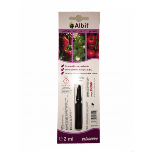 Albit este un biostimulator ce poate fi utilizat la toate tipurile de plante(culturi de legume, pomi fructiferi, culturi mari, plante de ornament, arbusti, gazon, vita-de-vie etc).